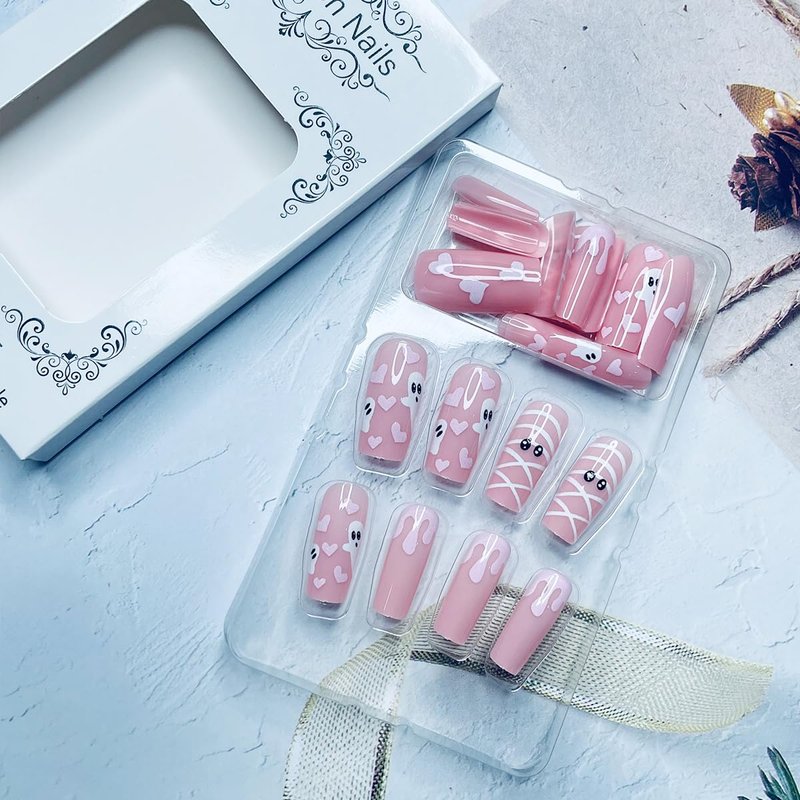 Item Type: Halloween press on nails- pink nails press on