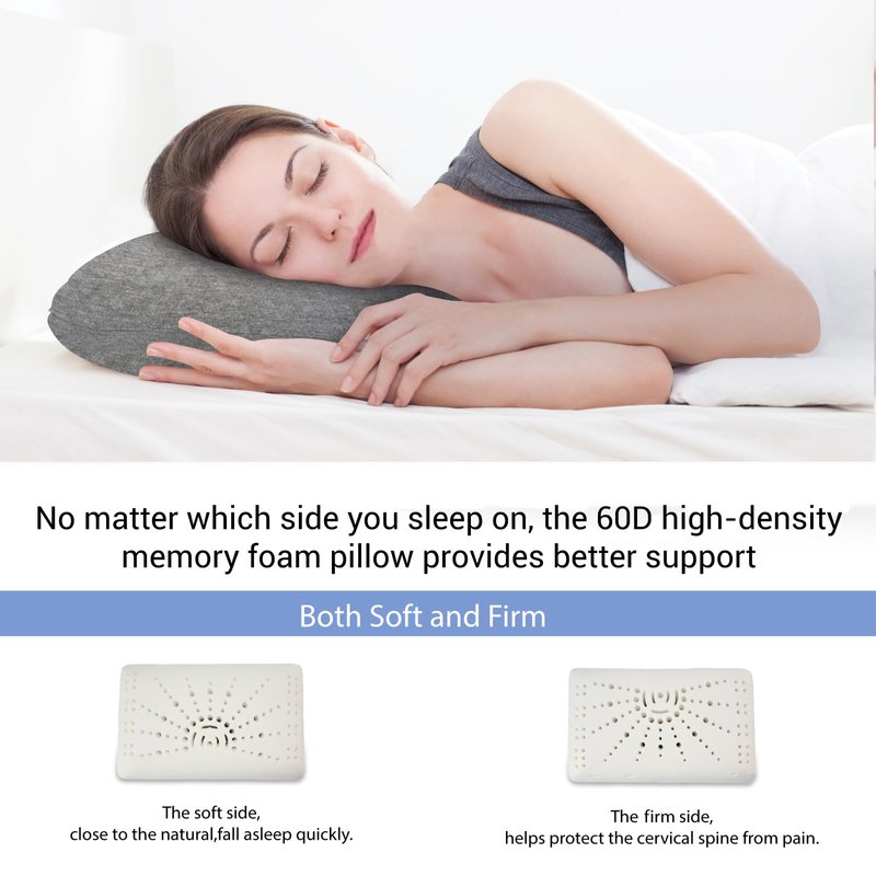 - Soft & Firm: Travel pillow is made from specially developed one single piece of memeory foam,soft on one side, firm on the other, suitable for people with different preferences and let you sleep with your spine aligned. Then you will wake up raring to take on the next adventure,avoid neck and shoulder soreness in the morning.