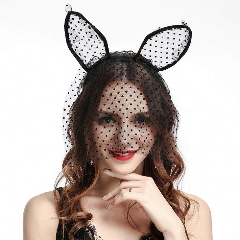 LSHDXD Halloween Headband Cat Ears Lace Veil Hair Band Headdress for Women, Perfect Hair Accessories for Halloween Ball Party Masquerade and Cosplay.