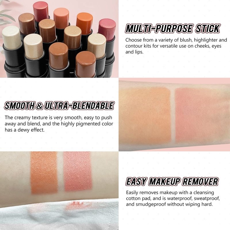 - 【Long-wearing & Waterproof】The cream texture of the blush stick is waterproof, preventing smudging or fading, ensuring that your makeup stays put even in humid or wet conditions. You can enjoy your fresh, natural-looking glow all day long without worrying about touch-ups.
