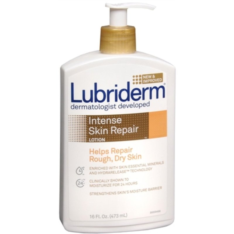 Lubriderm Intense Skin Repair Body Lotion, 16 oz - Help soften and smooth your skin with Lubriderm Intense Skin Repair Lotion, specially formulated to help relieve rough, dry skin. From a dermatologist-developed brand, this lotion is enriched with skin-essential minerals and Hydrarelease Technology to intensely hydrate and help repair dry skin. This fast-absorbing formula is clinically shown to help moisturize dry, rough skin for 24 hours to help provide all-day relief. It also helps strengthen your skin's own moisture barrier for better hydration, so the skin's appearance is left visibly improved. From Lubriderm, a dermatologist-developed brand, Intense Dry, Rough Skin Repair Lotion helps achieve healthy-looking skin. Intense Skin Repair Lotion is our solution to help repair rough, dry skin. Enriched with skin essential nutrients and HYDRARELEASE Technology, this fast-absorbing formula is clinically shown to moisturize for 24 hours to help repair and replenish dry skin.