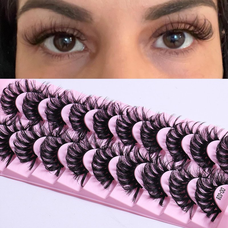 LuckForever 10 Pairs False Eyelashes Russian Strips Eye Lashes Wispy False Lash Fluffy Eyelash Extension Natural Look D Curly Volume Fake Eyelashes Reusable Faux Eye Eyelash for Women Girls