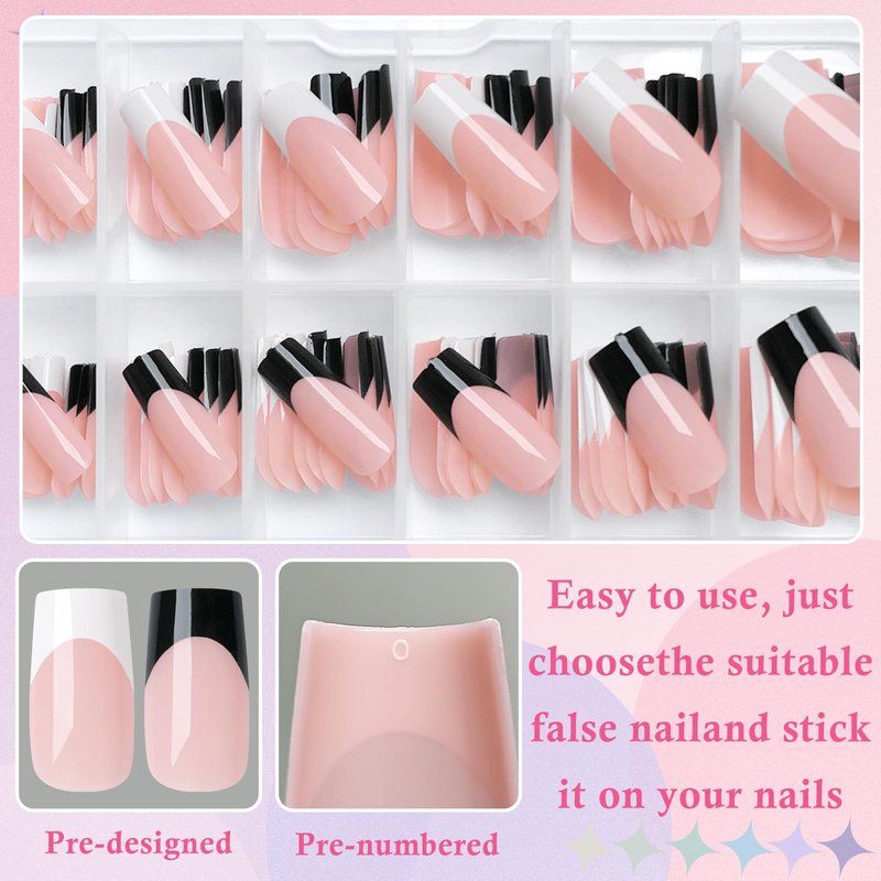 - Convenient to Apply:LuckForever square fake nails are made of soft gel material that is flexible, durable, and comfortable to touch.French nail tips is not easily pop off, Easily trim and file your nails to any length and shape as you like.We made these french tip press on nails completely follow the handmade process(base coat, color gel, pattern, top coat). The color and patterns are made by gel polish instead of printed by ink.
