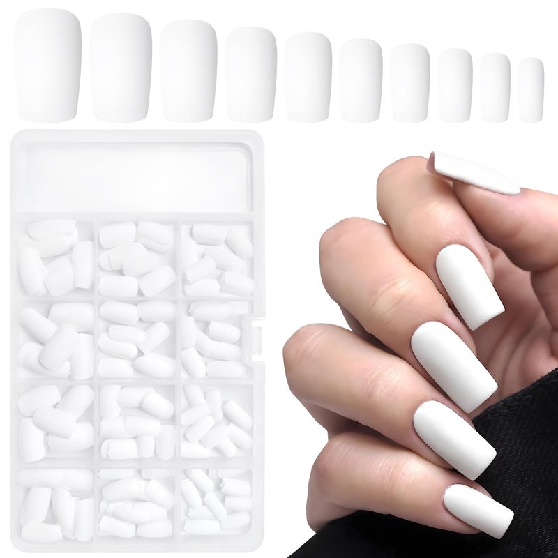 - Easy to Operate: White square press on nails medium are a super great neutral, artificial nails medium square press ons are works with tons of different skin tones.Y ou will definitely enjoy your DIY acrylic nails press on at home.If you want to pay less and need to take the square nails short nails off easily after an event/trip. Matte white square press on nails are a great option.