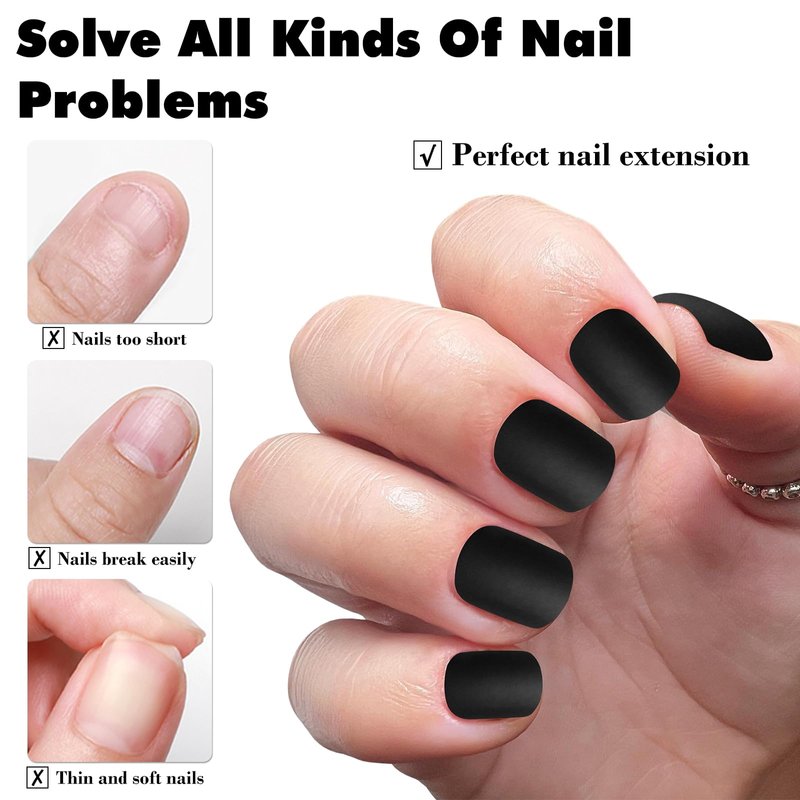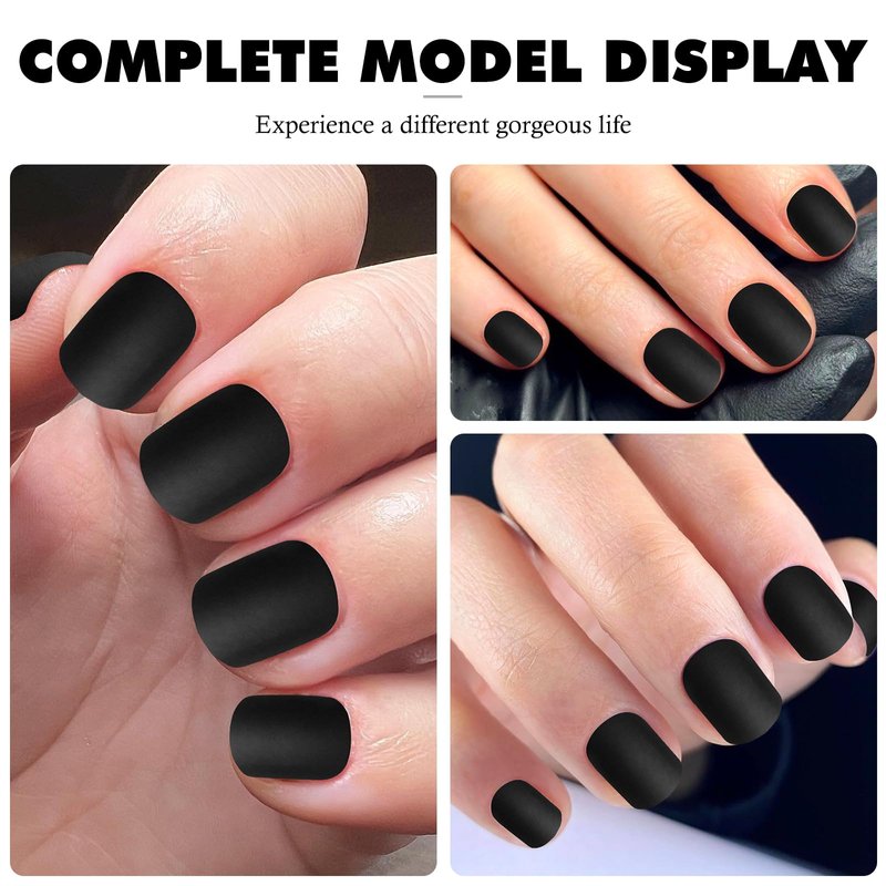 Presson on Nails Colors: black acrylic nails, black fake nails Artificial Nail Finish: Matte press on nails