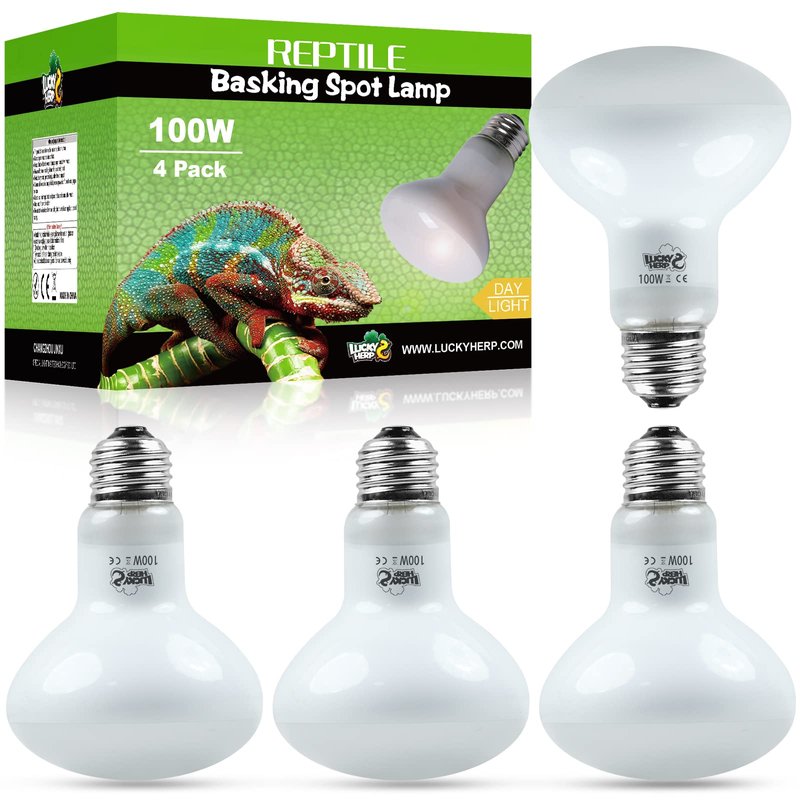 LUCKY HERP 4 Pack 100W Reptile Heat Lamp Bulb (2nd Gen), Amphibian Basking Light Bulb, Reptile Daylight Bulb for Turtle, Bearded Dragon, Lizard Heating Use