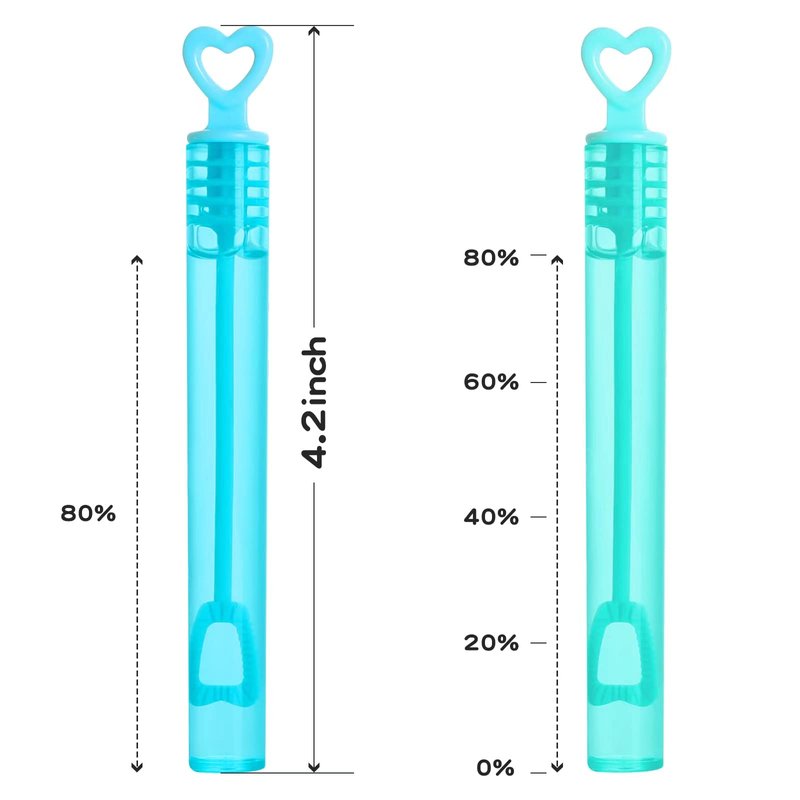 - Each bubble toy 4”tall and contains 0.2 oz. Perfect size for children 3 age+, prefilled with non-toxic smelless soap solution, Safe to kids’ skin and face. Child can enjoy the summer, various celebration.
