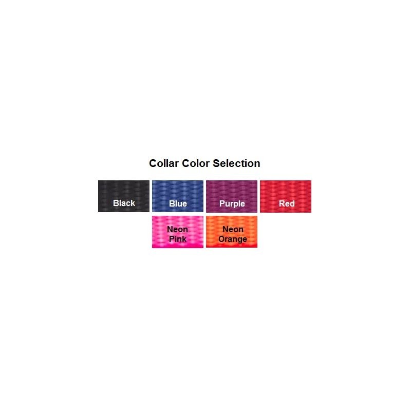 Something bright or something basic - Many colors to suit your pet's colorful personality!These nylon collars will adjust to fit your pet's neck comfortably.Available in Red, Purple, Blue, Neon Orange, Neon Pink and Black, and sizes ranging from 6" - 26".Please note - we found that the Neon Pink and the Red can bleed color if they get wet, so we do not recommend Neon Pink or Red on white fur.***The 3/8" sizes are not recommended for walking dogs. Use a 5/8" size or wider if you intend to attach a leash to your pet's collar.