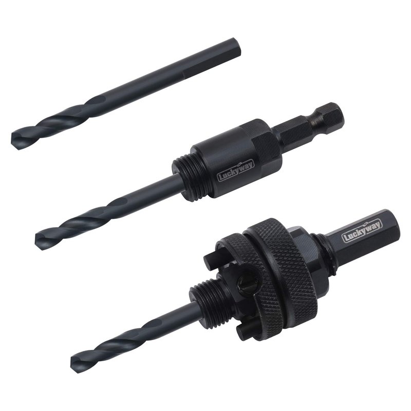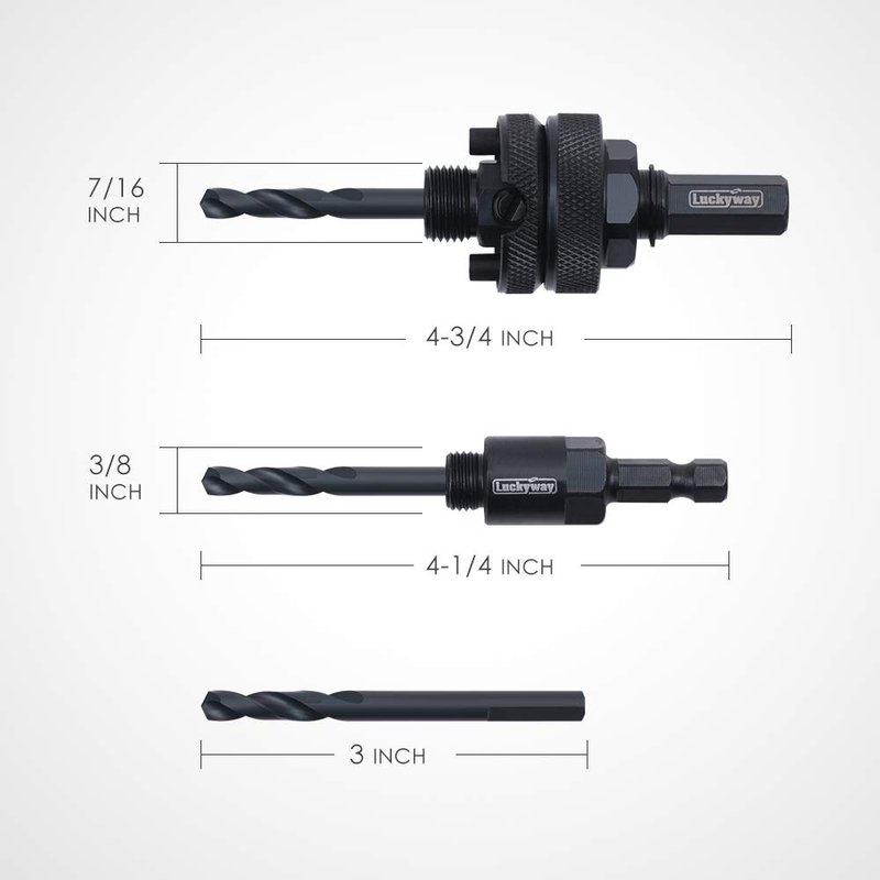 Luckyway 3-Piece Hole Saw Mandrel,Fit 3/4-Inch to 6-Inch Diameter,Including 7/16-Inch and 3/8 Inch Shank Hole Saw Arbor and 3-Piece 1/4 Inch HSS(M2) Central Drills