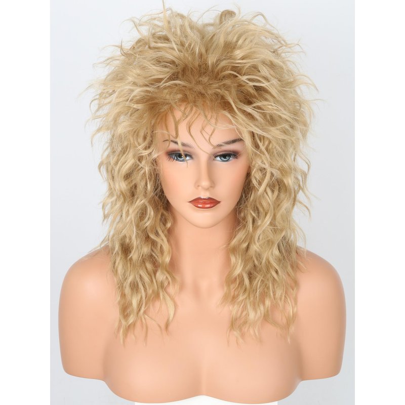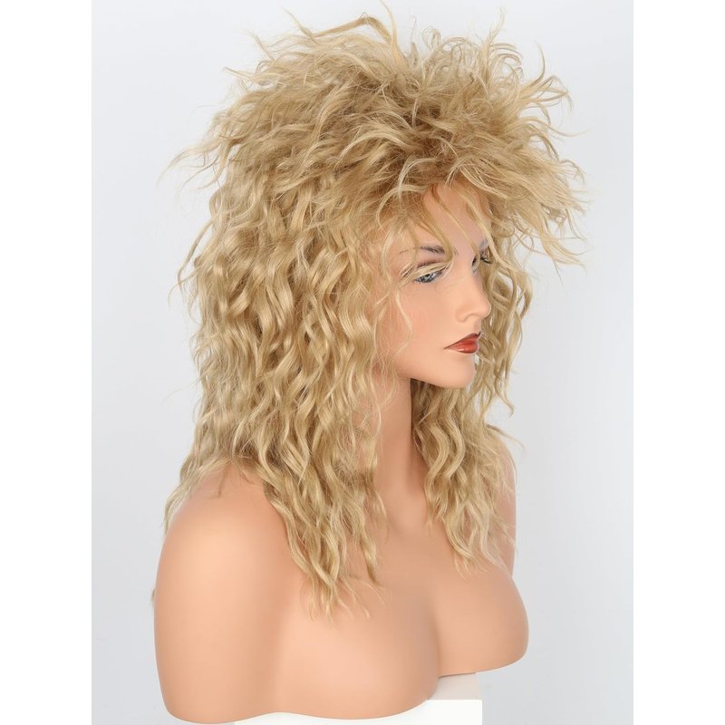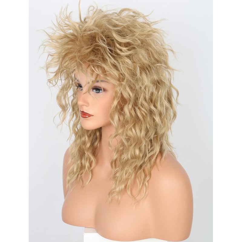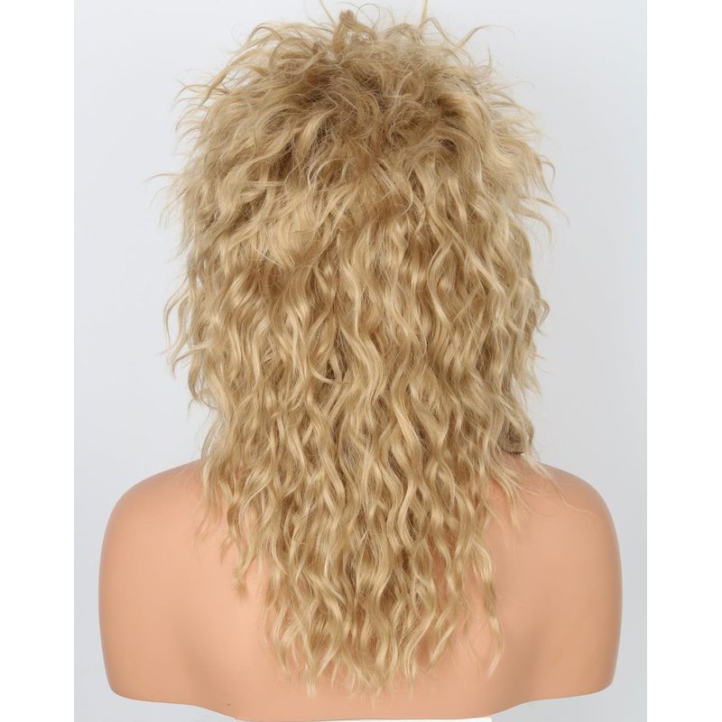 Lucoacos Womens Blonde Long Curly Wig 80s Rocker Mullet Wig Halloween Party Costume Wig