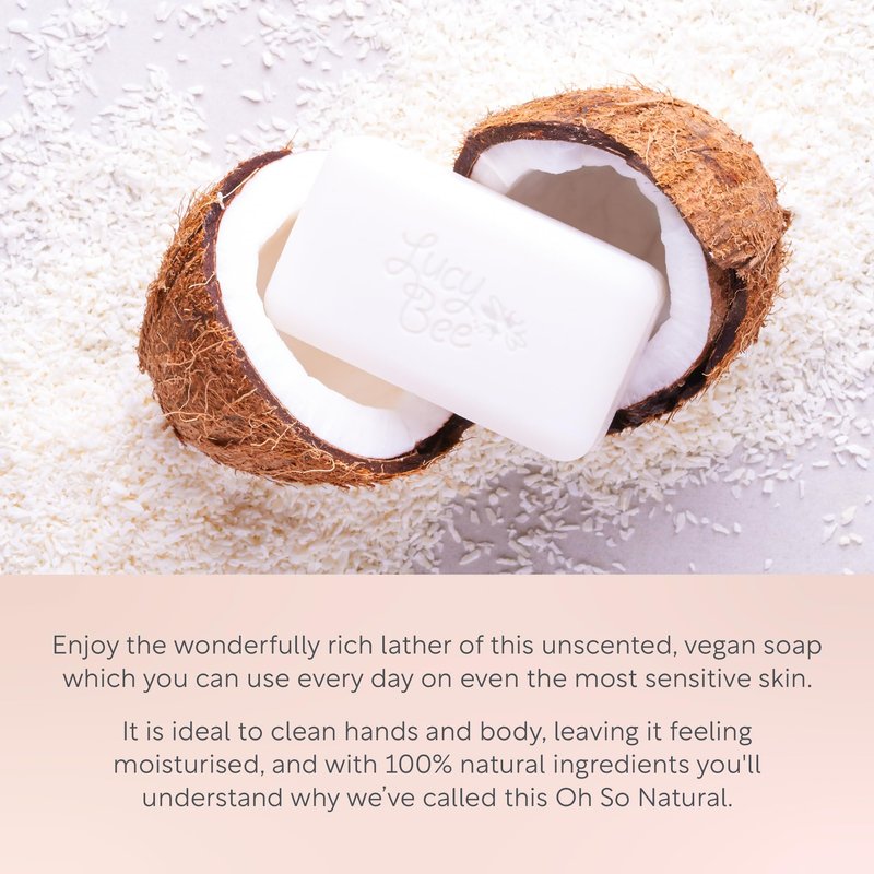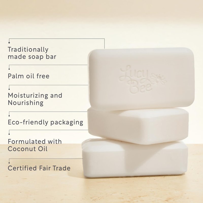 - CERTIFIED ORGANIC & NATURAL INGREDIENTS: Our soap is crafted the traditional way using Lucy Bee fair trade coconut oil, which ensures no animals are used in the harvesting process. It’s 100% palm oil-free, certified fair trade, organic, vegan, and cruelty-free, and an ethical Best Buy with The Ethical Consumer Magazine, offering you the highest quality natural ingredients.