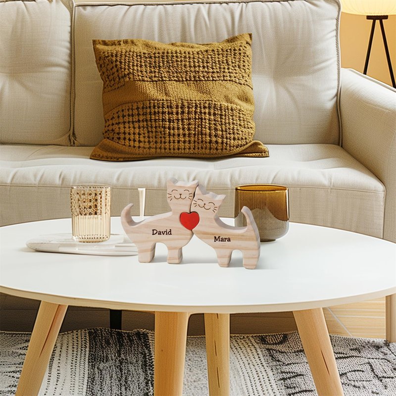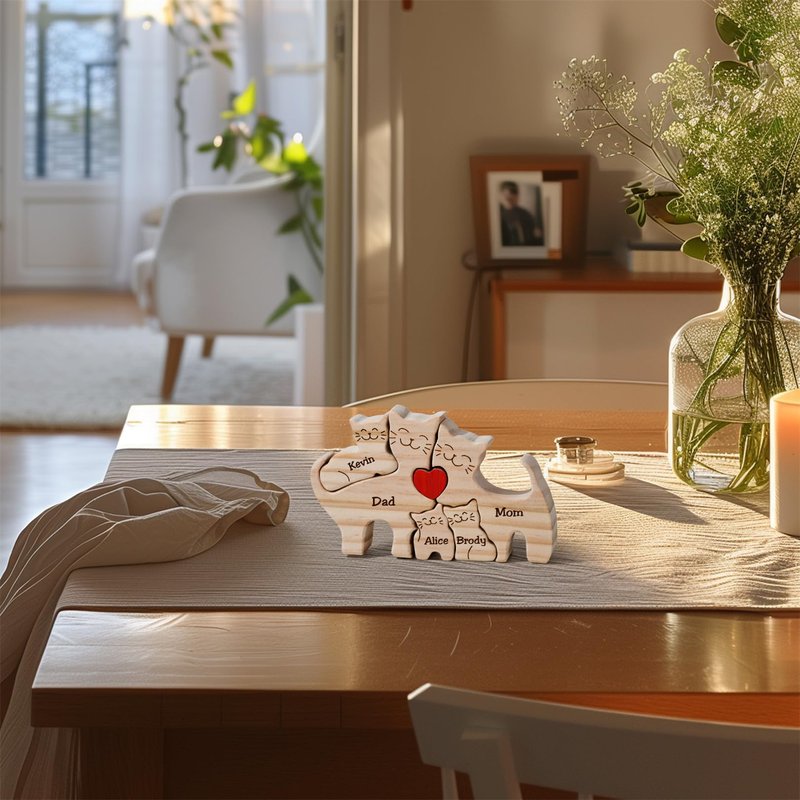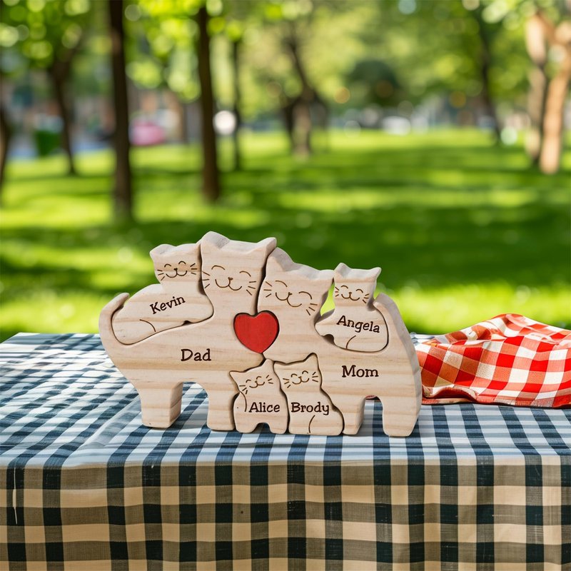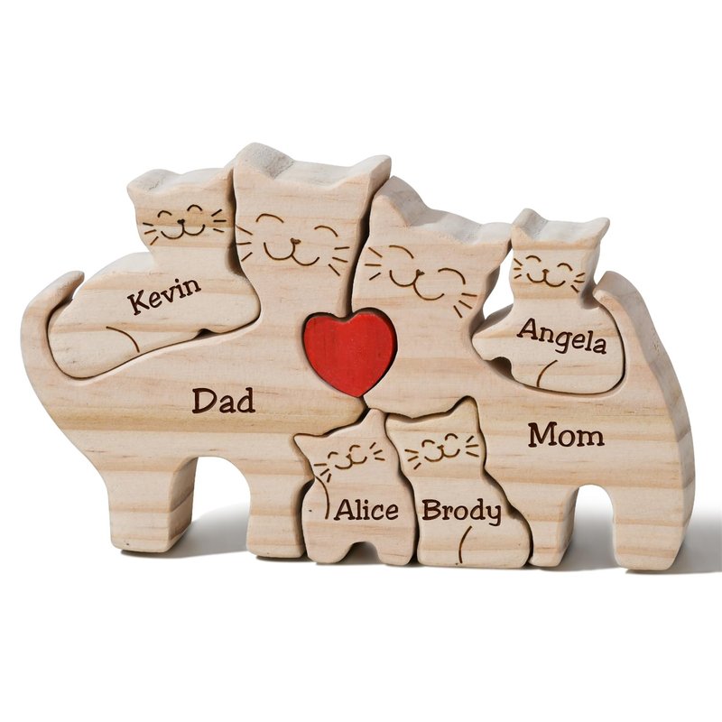 LucySky Personalized Wooden Cat Puzzle with 2-6 Family Names, Personalized Wooden Puzzle, Customized Wooden Decor Gift for Mother's Day, Father's Day, Birthday, Wedding, Anniversary