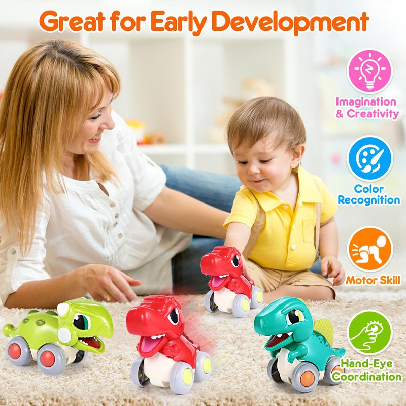 - Great for Early Development: Engaging 1 year old toys for boys, in cute and colorful dinosaur look, can stimulate kids' curiosity, motivate them to crawl, walk, run and race cars, develop social skills and enhance parent-child bonding. Adorable baby boy toys 12-18 months with interesting mouth for diverse gameplay, inspire baby's imagination and creativity. Gift toddler boy toys for 1 2 3 years old, let kids learn by playing