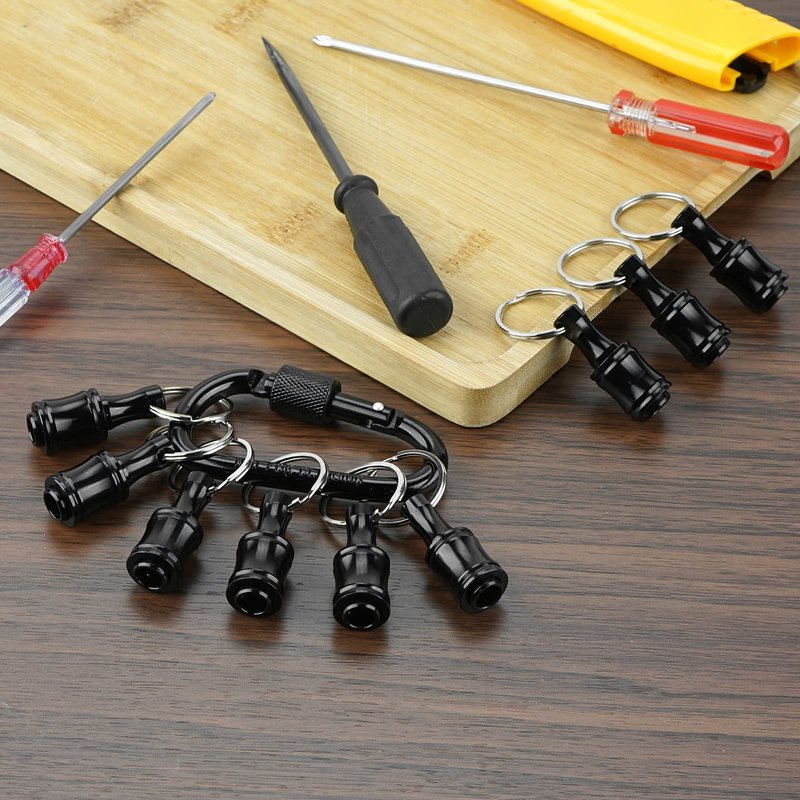 - 1/4 inch bit holder keychain prevents accidental dropping of the hex handle. It is easier to pick up the product and replace the drill bit you need with one hand, which helps to ensure the safety of high-altitude operations.