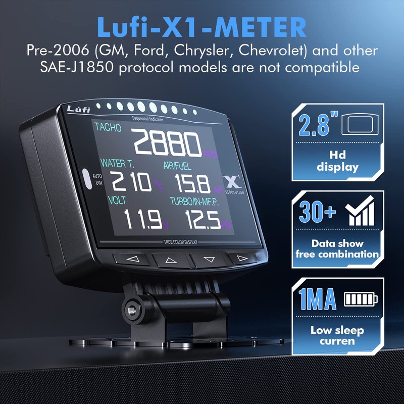 Lufi X1 Obd2 Gauge Display,Boost Gauge,Speedometer,Water Temperature Meter,Multi-ECU Data Combination Cluster,for Honda、Toyota、VW and Mazda (car Special)