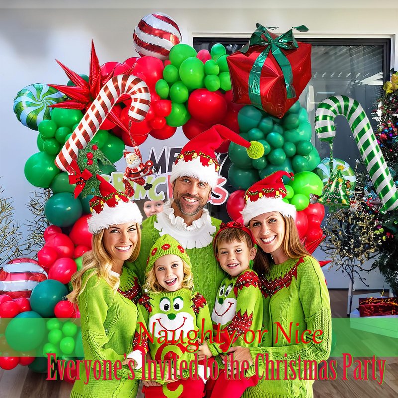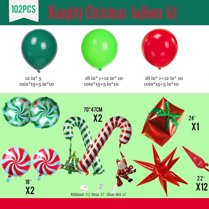 LuftParty Christmas Balloon Garland Kit 120pcs Xmas Red Green Balloons with candy cane Christmas tree gift box Balloons for Kids Grinchmas Party Naughty Christmas Birthday Decorations