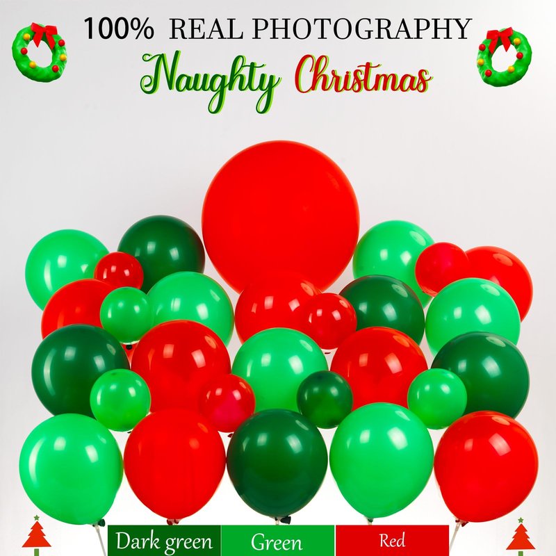 - 【Christmas Themed red and green pink Balloon Kit】INCLUDES the following 120+PCS 5" 10" 12"18" balloons in various sizes, we chose red and green pink as Palette for the theme, Add19pcs foil Christmas Themed balloons。Balloon & Glue Dot Tie Kit lets you create a cheerful and vibrant atmosphere, perfect for Christmas themed party