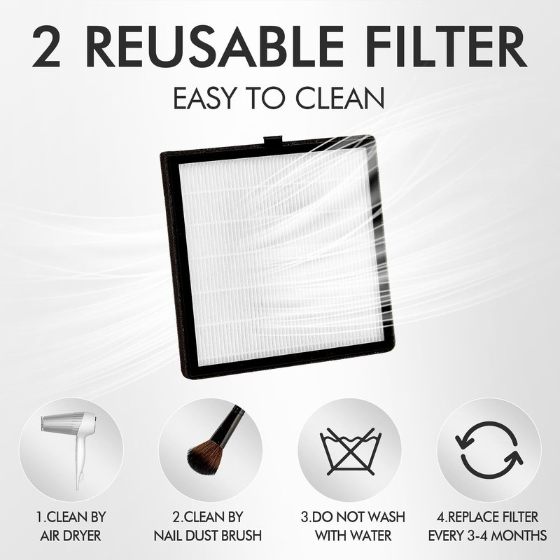 - 【Package】Includes 2-Pack nail dust collector filter.