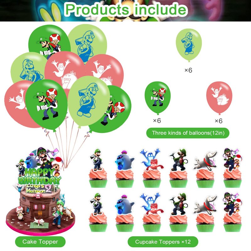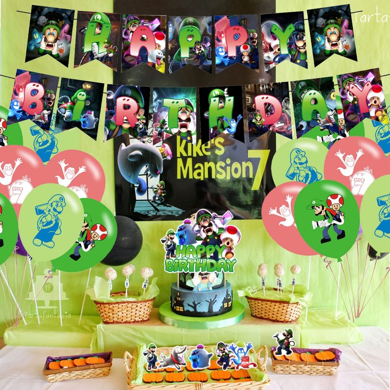 Luigi's Mansion 3 Party Decorations,Luigi's Mansion 3 Party Supplies,Luigi's Mansion Themed Includes Banner,Cake Toppers and Luigi Balloons for Luigi's Mansion 3 Birthday Decorations