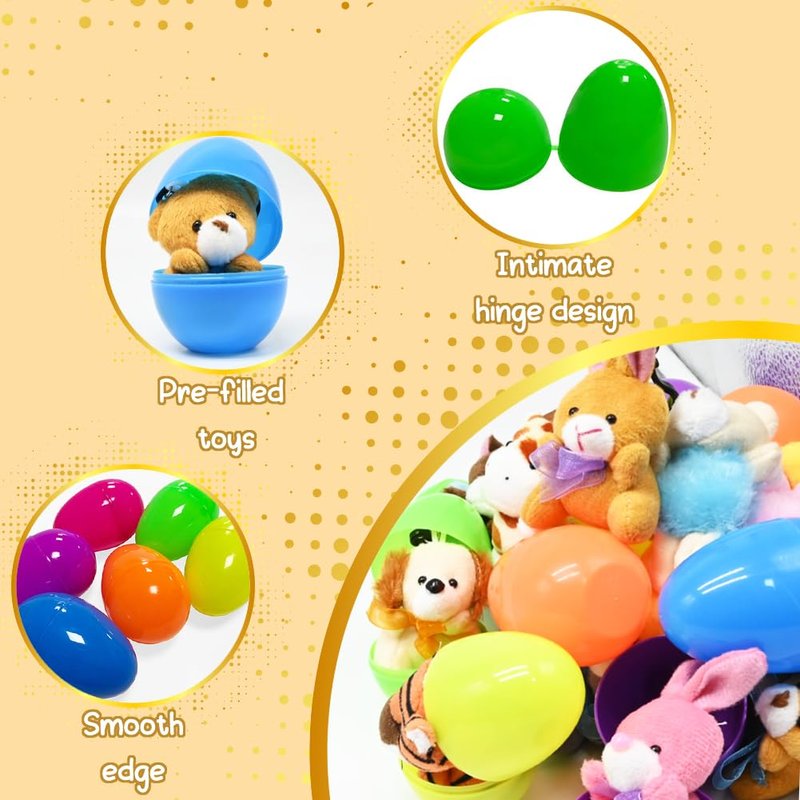- SUPER VALUE PACK: Our easter basket stuffers set comes with 16pcs non-repeating plush animals keychains and 16pcs easter eggs in 6 bright colors (two each in six colors and four in random colors).
