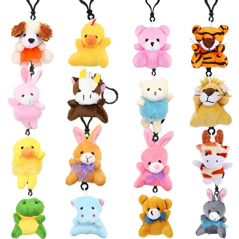 LUKBERA 16Pcs Stuffed Animals Keychains, Mini Assorted Animals Plush Toys For Kids Goodie Bag Fillers Easter Egg Hunt Easter Basket Stuffers Classroom Exchange Gifts