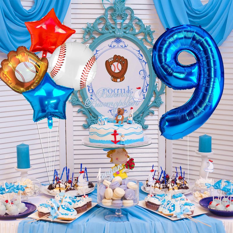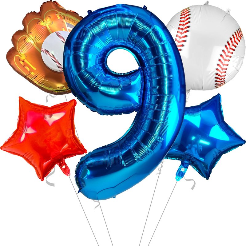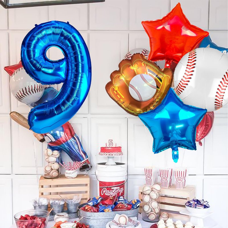 - 【9th Baseball Bat Mylar Balloon】Package includes:1 Pcs blue number 9 balloon,1 Pcs baseball glove foil balloon,1 Pcs round baseball foil balloon,1 Pcs star red balloons,12 Pcs glue dots,1 Pcs straw and 1 Pcs ribbon.Elevate your party with our eye-catching Number 9 baseball balloon set! It adds a passionate and dynamic sports atmosphere to any occasion.