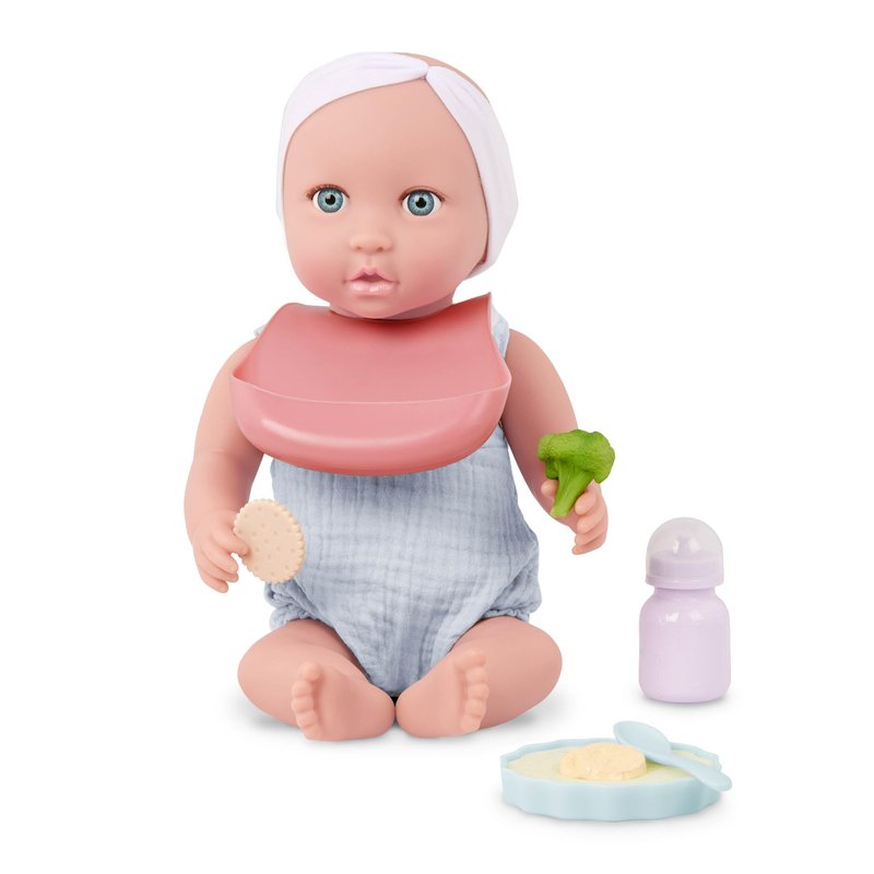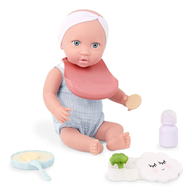 - Easy-to-Close Bib: Snap the stylish bib on to keep baby doll's outfit clean during snack and meal times.