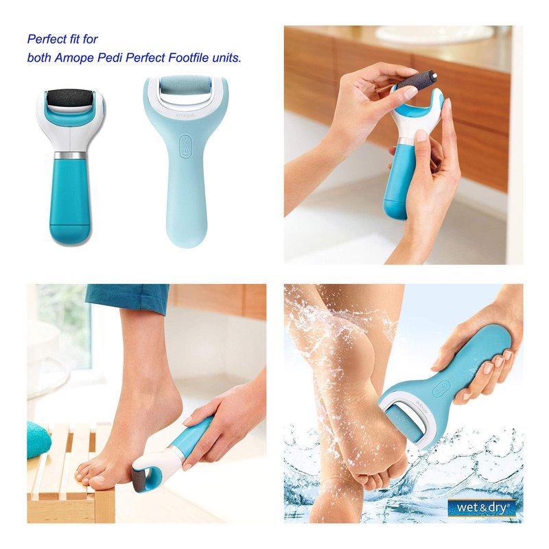 - Specially Curved Designed Amope Pedi Perfect Refill: for use on Dry Skin to reveal touchably soft,smooth feet. Refillable roller head spins 360 degrees for quick results on thick, calloused skin.The rollers can fit your skin surface perfectly.