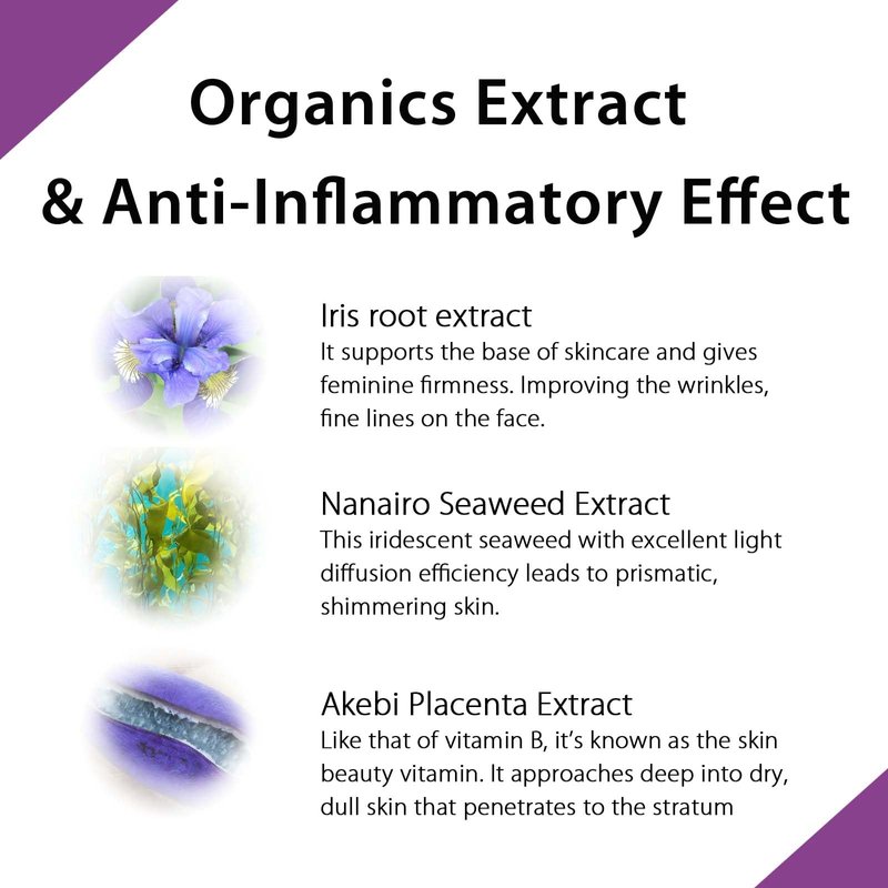- A moisturizing and firming ingredient derived from iris root containing flavonoids and isoflavones. It supports the base of skincare and gives feminine firmness and luster.