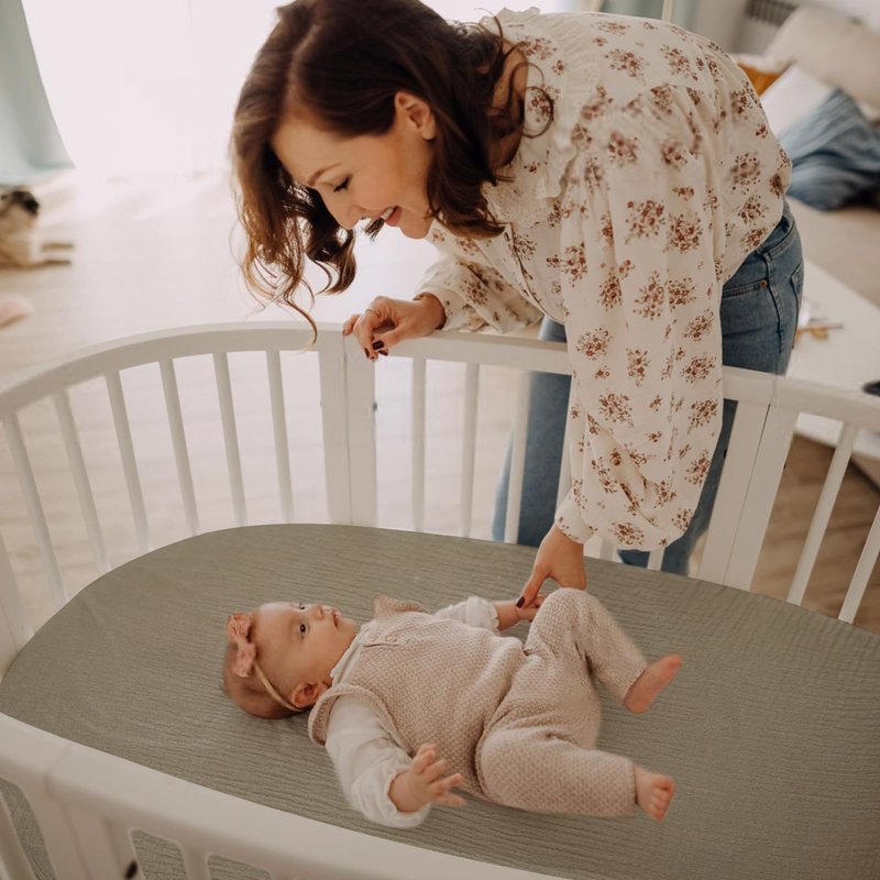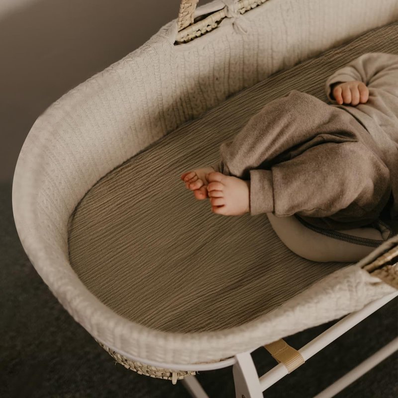 lulumoon Muslin Bassinet Sheets Fitted - Universal Cotton Baby Sheets for Rectangle, Hourglass or Oval Bassinet Mattress (Olive & Cream)