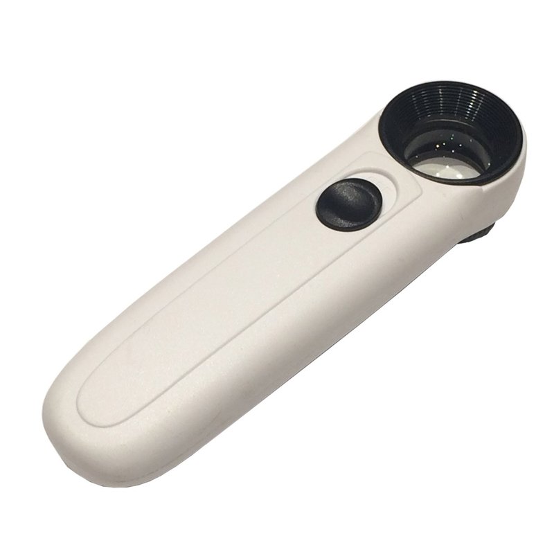 LUMAGNY 40x Power Handheld LED Illuminated Magnifier (CR-00844-8621). This meticulously crafted device offers an ultra-powerful 40x magnification through a 21mm diameter lens, granting you access to a world of micro-details. It is a highly beneficial tool for jewelers aiming for flawless craftsmanship, or hobbyists indulging in intricate projects. The magnifier is engineered for comfort and utility, with an ergonomic handle that rests snugly in your hands, enhancing the ease of examining objects for extended periods. Weighing just 0.15 lbs, this pocket-sized marvel is synonymous with effortless mobility. Its lightweight design ensures it's a convenient companion in your toolbox, ready for tasks demanding a close-up analysis wherever you go. The inclusion of two robust LED lights is a game-changer, significantly enhancing visibility in all lighting conditions. Operated by a simple sliding switch, the illumination simplifies the identification of minute details, colors, and textures. This feature is indispensable when working under poor lighting conditions, ensuring your projects continue unhindered. The magnifier requires 3 "AAA" batteries, positioned at the handle's back for balanced weight distribution. This smart placement also ensures easy battery replacement. The LUMAGNY 40x Power Handheld LED Illuminated Magnifier isn’t just a magnifying glass; it's an extension of your sight, offering a detailed view into the microscopic realm with optimum comfort.