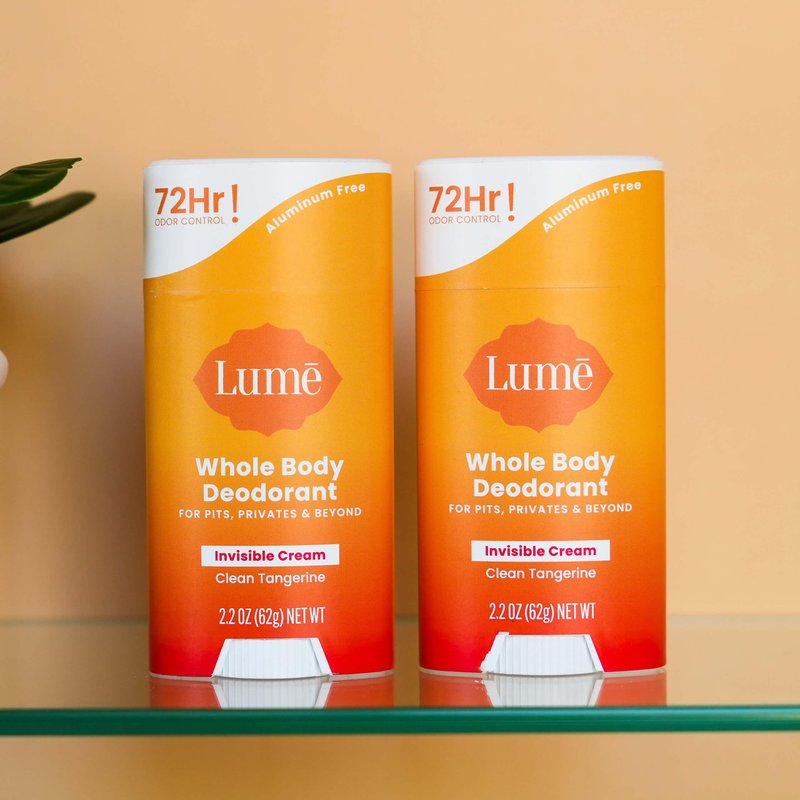 Lume Whole Body Deodorant - Invisible Cream Stick - 72 Hour Odor Control - Aluminum Free, Baking Soda Free, Skin Safe - 2.2 Ounce (Pack of 2) (Clean Tangerine)