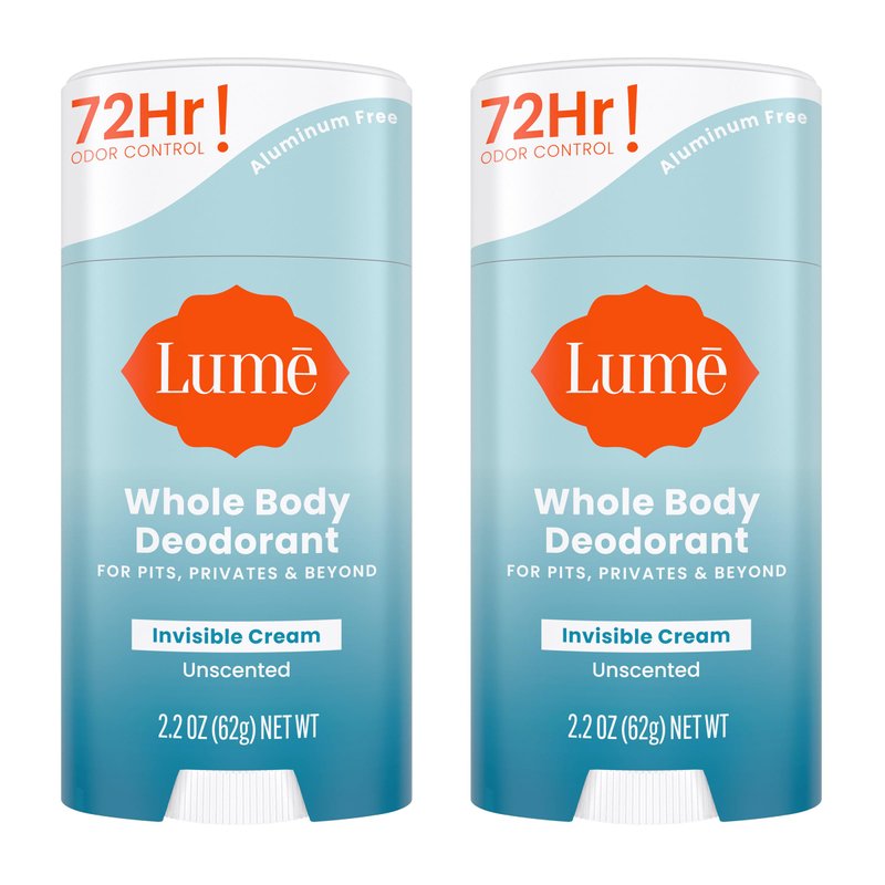 Lume Whole Body Deodorant - Invisible Cream Stick - 72 Hour Odor Control - Aluminum Free, Baking Soda Free, Skin Safe - 2.2 Ounce (Pack of 2) (Unscented)