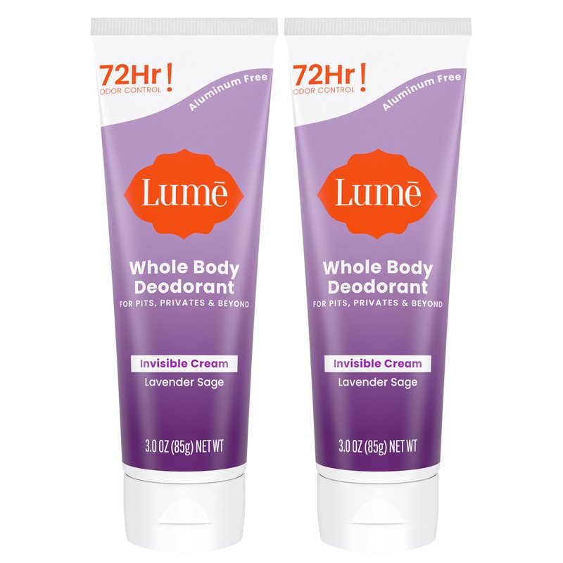 Lume Whole Body Deodorant - Invisible Cream Tube - 72 Hour Odor Control - Aluminum Free, Baking Soda Free, Skin Safe - 3.0 ounce (Pack of 2) (Lavender Sage)