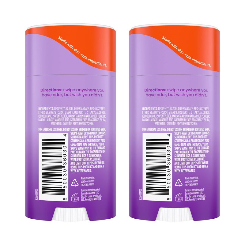 Odor control for pits, privates and beyond—think feet, underboob, belly buttons, tummy folds, butt cracks, thigh creases or anywhere else you have odor but wish you didn’t. Lume is clinically proven to block body odor all day and continues to control odor for 72 hours. Doctor developed for women and safe for any external use. Aluminum free, baking soda free, and paraben free. Hypoallergenic and skin safe for even our most sensitive parts.
