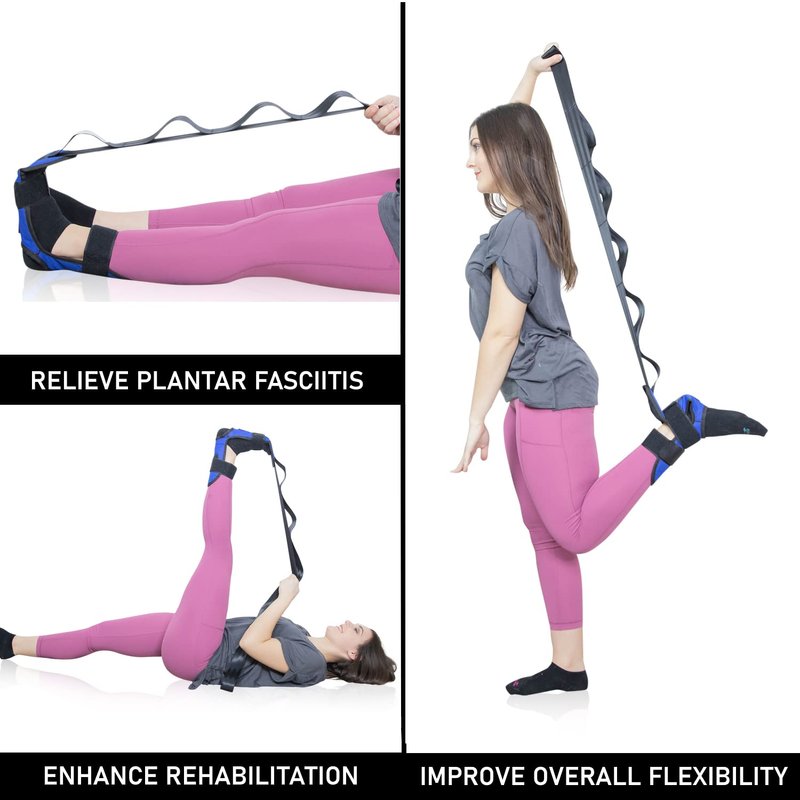 - Alleviate discomfort with heavy-duty stretching straps designed for plantar fasciitis, strained Achilles tendons, shin splints, and anyone seeking effective calf, foot, ankle, and hamstring stretching.