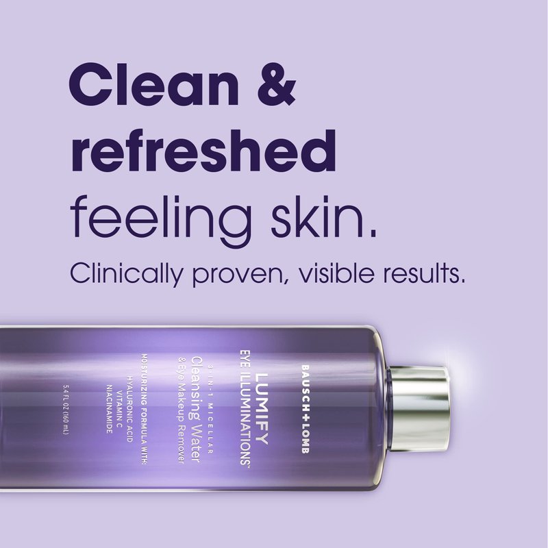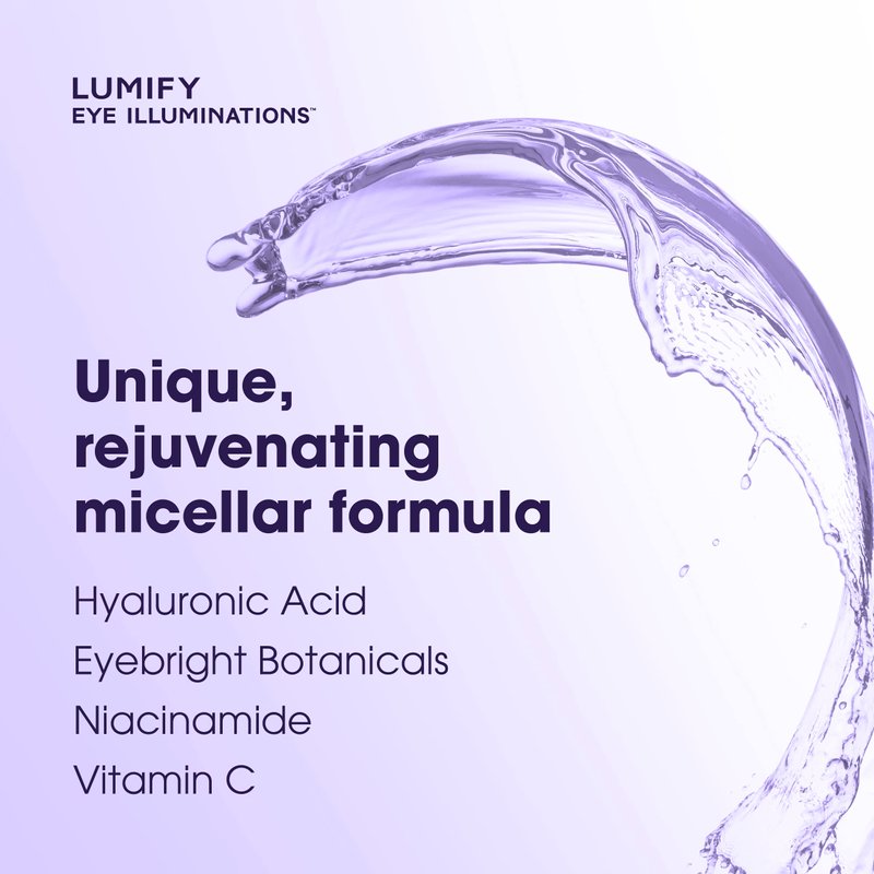 LUMIFY Eye Illuminations Cleansing Water & Eye Makeup Remover, 3-in-1 Micellar Water Contains Hyaluronic Acid, Vitamin C & Niacinamide, Clinically Proven & Hypoallergenic, 160mL