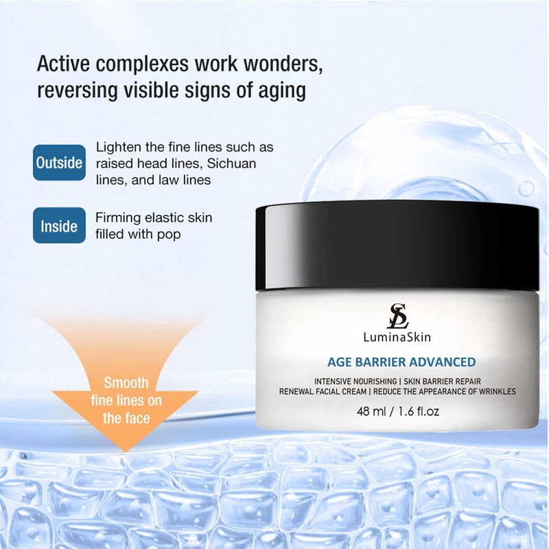 - Anti-Aging Power: Transform - Infused with blueberry and pomegranate extracts, LuminaSkin Age Barrier Advanced Cream combats the signs of aging by addressing the decline in collagen production, reducing the appearance of wrinkles and sagging skin.