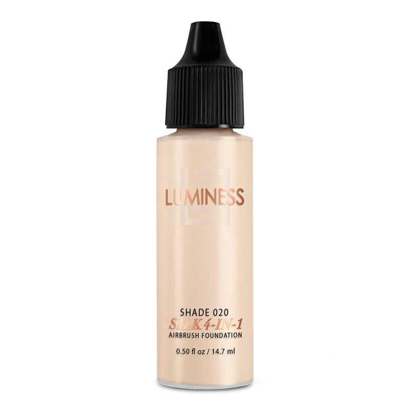 - Lightweight Coverage with a Natural Satin Finish: LUMINESS SILK 4-in-1 Airbrush Foundation combines an anti-aging serum, primer, high-coverage concealer, and all-day foundation into one. Provides 12-18 hours of water-resistant wear. 0.5-oz bottle in Shade 020.