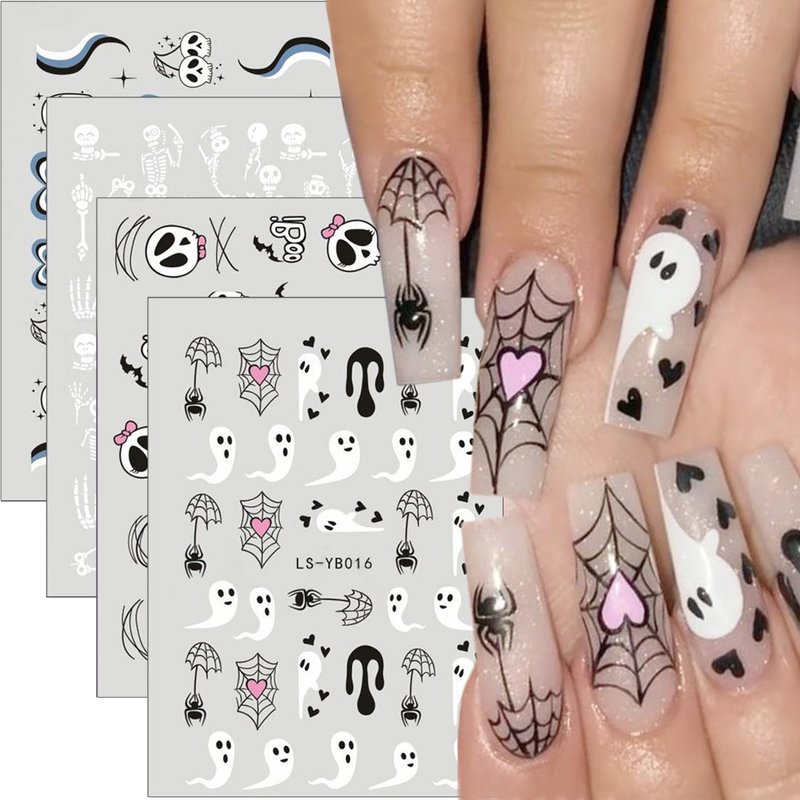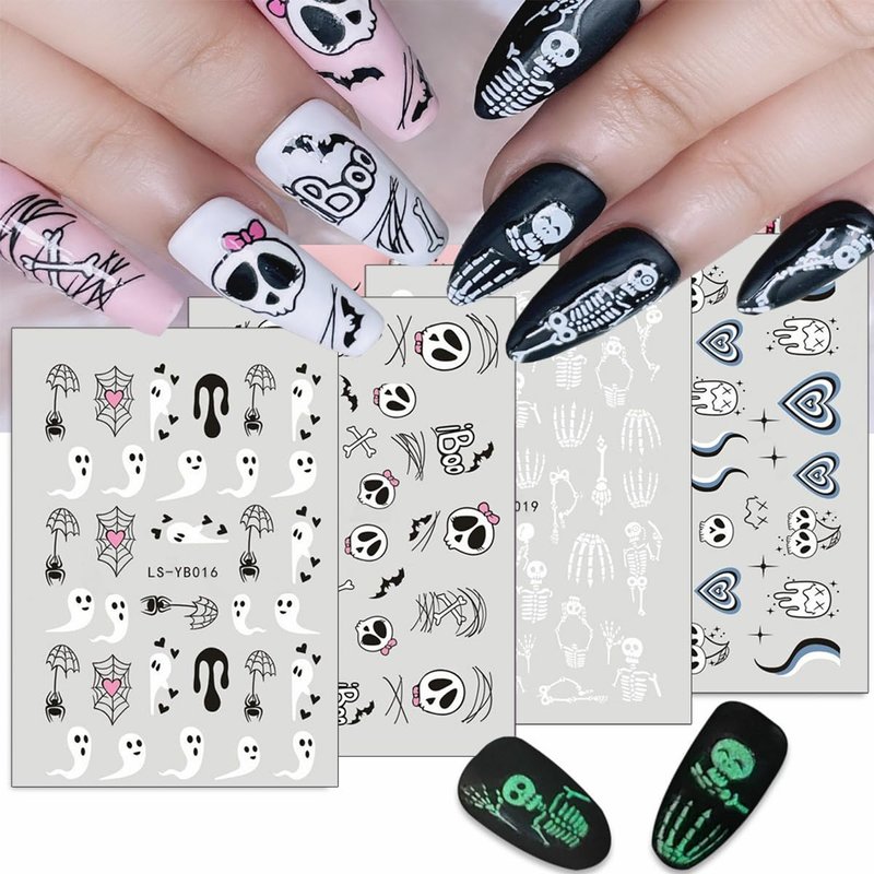 - Easy to Use: This spooky skeleton nail decals for nail art is self-adhesive. just use tweezers to tear off the ghost nail stickers, and then stick the 3d skull nail stickers on the nail.You can also use nail gel to cover to make the stickers last longer