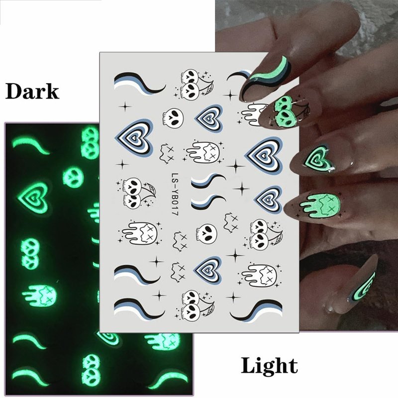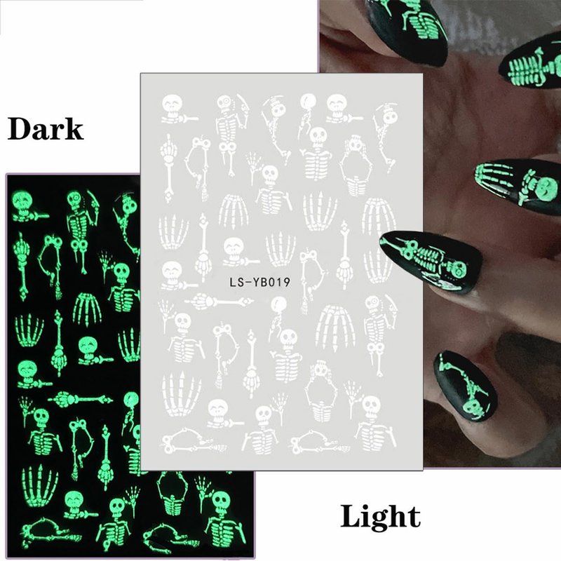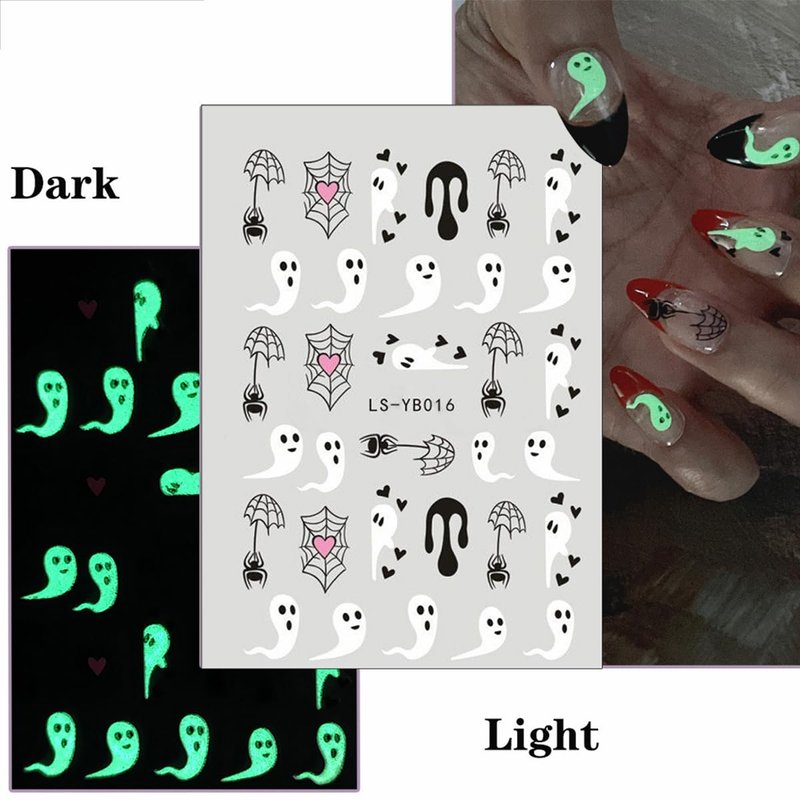 - Halloween Stickers Set :You will get 8 sheets Halloween luminous nail stickers ,cute nail designs stickers decals are the perfect fashion accessories.Halloween nail decals are full of sensuality and elegance, Various charming patterns bring you a different mood