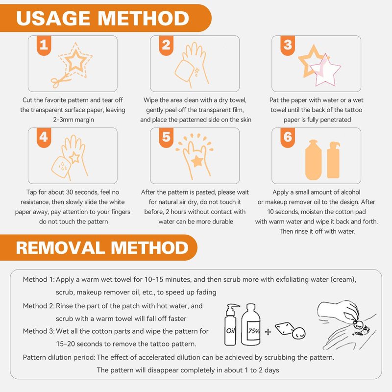 - 【Easy to Apply and Remove, Waterproof and Long-Lasting】 Our Halloween stickers are incredibly easy to use and remove. Place it face down on the skin, and wet it with water. Wait for 10 seconds, then gently remove the white surface to reveal the tattoo. These luminous temporary tattoos are designed to last, being waterproof and sweat-resistant, ensuring they stay vibrant for 3-5 days. When it’s time to clean up, a quick wipe with alcohol, body oil, or olive oil easily removes the tattoos.