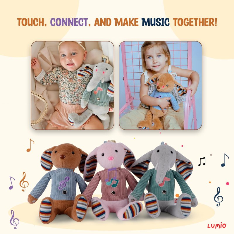 Lumio Interactive Musical Plush Toy with Lights & Sounds, Sensory Development Toy for 1-6, 6-12 Month Babies, Ideal for Tummy Time, Rhythm Learning, and First Birthday Gifts – Bunny (Bunny)