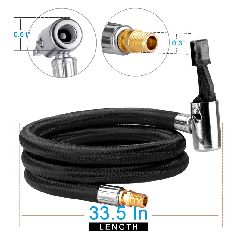 - ➤【31 Inch Lengthened & Flexible】Lengthened 31 inch tire inflator/pump hose adapter with high quality strengthen nylon-wrapped rubber hose, more durable and flexible.