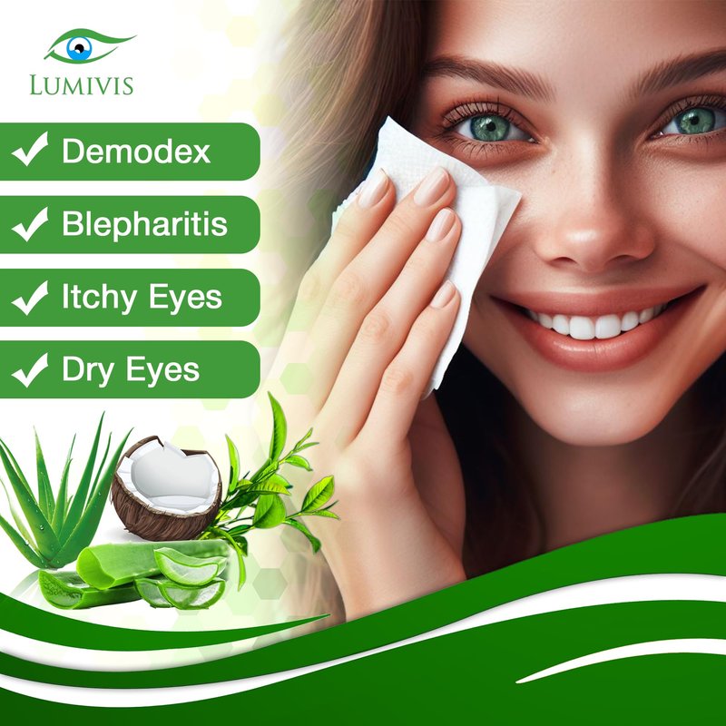 - PREMIUM EYE CARE with NATURAL TEA TREE: Lumivis tea tree oil eyelid wipes offer the gentlest and most effective eye care, free of preservatives, alcohol, and irritants. Say goodbye to irritation in the most sensitive parts of your body while pampering and cleansing your eyes naturally