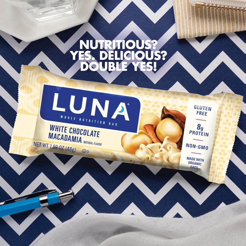 LUNA Bar - White Chocolate Macadamia Flavor - Gluten-Free - Non-GMO - 7-9g Protein - Made with Organic Oats - Low Glycemic - Whole Nutrition Snack Bars - 1.69 oz. (15 Count)