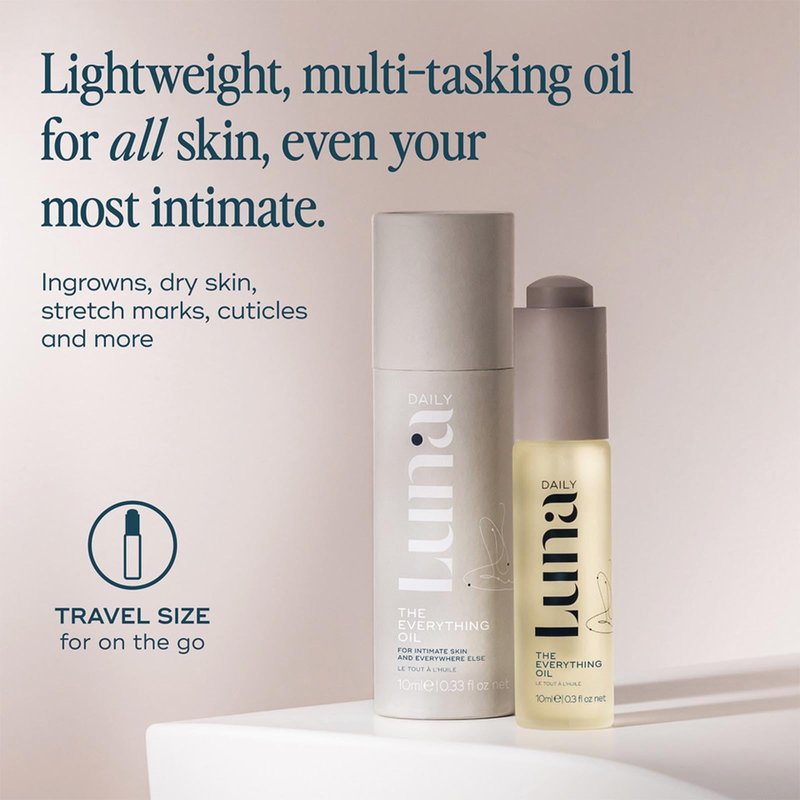 Luna Daily The Everywhere Wash + Oil Set | Travel Size Body Wash and Oil for Women | Unscented, Natural, Moisturizing, Hydrating Shower Set