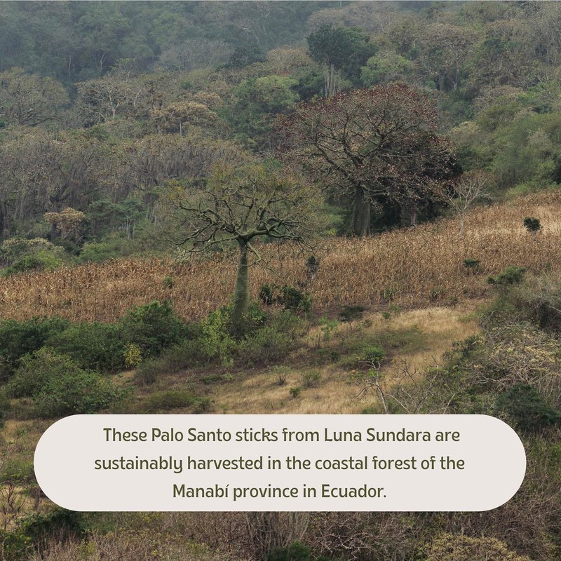 - These Palo Santo sticks from Luna Sundara are sustainably harvested in the coastal forest of the Manabí province in Ecuador. Known to be one of the best sources of Palo Santo in the world.