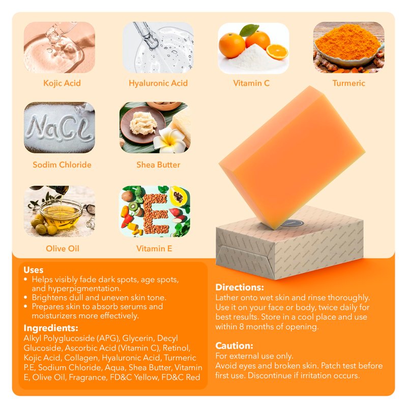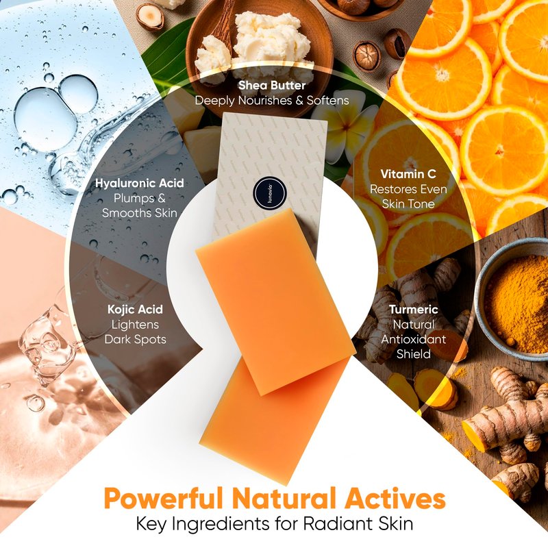 lunavia Kojic Acid Dark Spot Remover Soap Bar with Vitamin C, Turmeric, Retinol, Collagen & Hyaluronic Acid – Brightening Face & Body Soap – Fade Dark Spots, Even Skin Tone – 3 Pack