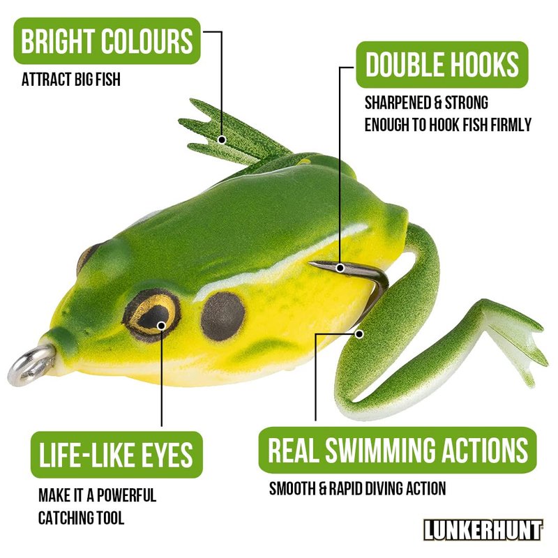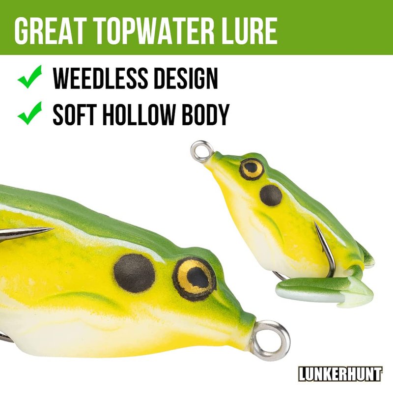 - ✅ MAKES CATCHING FISH EASIER - the frog drops down a little into the water perfectly replicating the action of a real frog / bullfrog. Other frog lures are no match for this Lunkerhunt fishing lure.